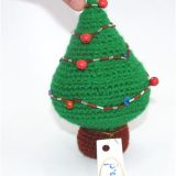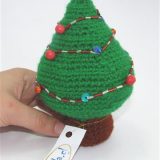 Amigirumi con forma de Pino Navideño o Arbolito de Pascua , tejida en lana de forma artesanal y decorado con accesorios en forma artesanal.